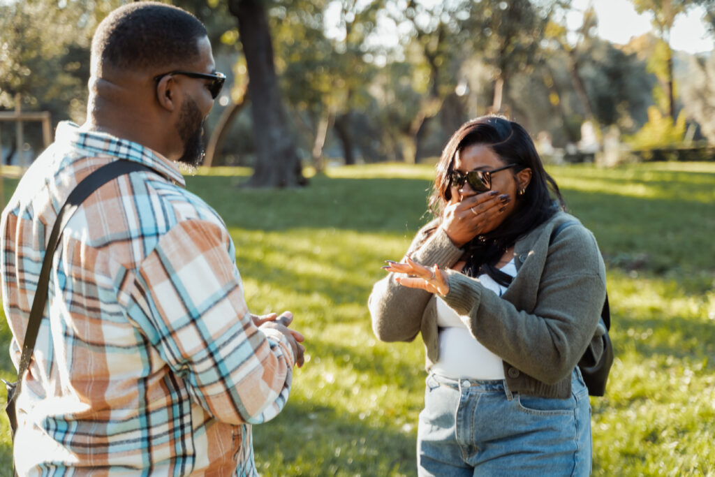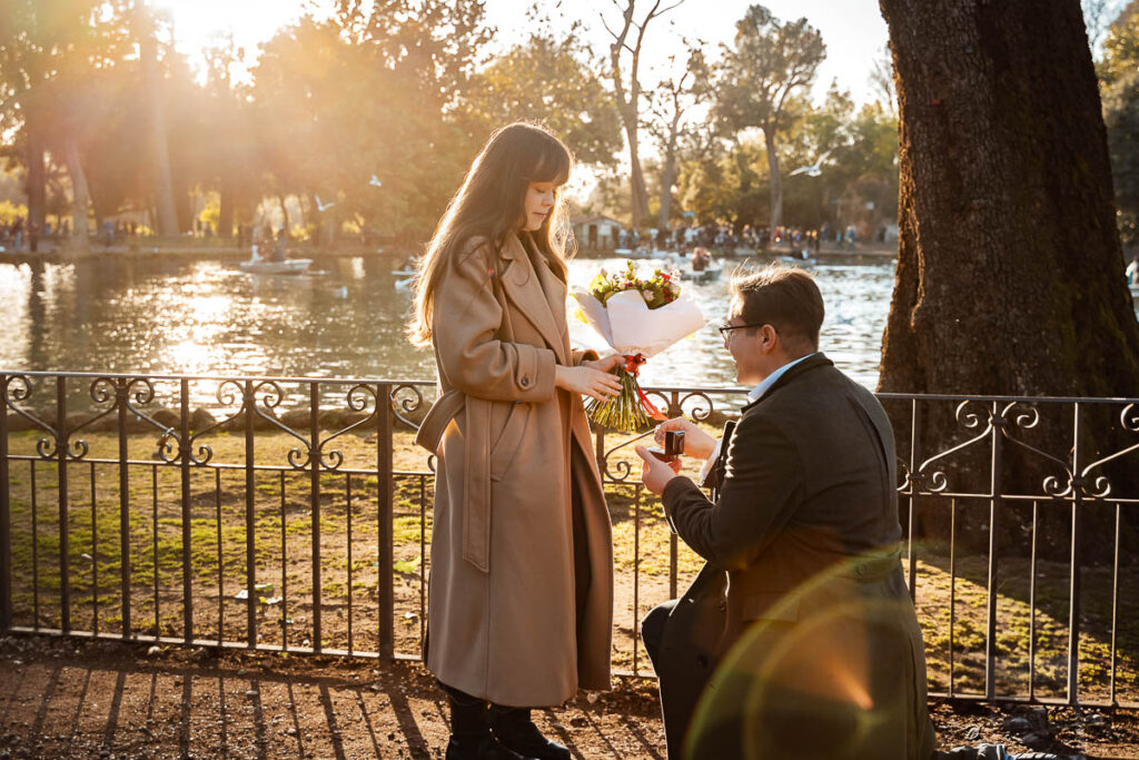 It’s an exciting situation, a huge step, and often the person planning it finds themselves thinking about things they hadn’t considered. How to dress to look photogenic without giving anything away to your partner, or how to coordinate with the photographer without ruining the surprise—details that naturally don’t come to mind because it’s not your job. That’s mine. When you decide to propose during a trip—maybe in Rome or some special corner of Italy—you know it’s not just about picking the right location or the perfect moment, right? You want everything to be beautiful and romantic, to harmonize with the backdrop of this important trip, and you want the photos to truly capture the love and emotion of that unique moment. In this article, I’ll tell you what really happens behind the scenes of a photographed proposal in Rome, the most common challenges, and especially the strategies I use to solve them. With a few careful steps, everything can go exactly as you’ve dreamed, letting you enjoy every moment stress-free. If you’ve already decided to take this big step, here you’ll find practical advice to prepare and turn your proposal into a beautiful memory, full of emotion and photos that will stay with you for life. You’ll discover the most frequent problems in secret proposals, especially during travel, and I’ll introduce four proven strategies to organize them smoothly with a photographer in Rome. These methods will help you overcome common obstacles and get the best photos, creating authentic and lasting memories. Common Challenges in a Travel Proposal How to Handle Them and Capture the Photos You Imagine Proposing during a trip—maybe in Rome or another Italian city—is exciting and unforgettable. But behind the magic and romantic atmosphere, there are practical and logistical challenges that often go unnoticed until the moment. Especially if you want a photo session that truly captures those unique moments, problems can become more apparent. The good news? With a little preparation, some clever tricks, and the right strategy, everything can go smoothly. 1. The Outfit Challenge One of the most common issues is clothing. In surprise proposals, only the person planning it knows they need to dress well, while the recipient has no idea. Often, the unaware person ends up in an outfit perfect for sightseeing but less suitable for the photos you want to frame. It’s understandable—especially since you’re traveling and comfort is key—but this can create a visual imbalance: the planner is ready with styled outfits and makeup for the camera, while the other looks like a casual tourist. That said, the photos are always great, because it’s the moment and emotion that make the difference. But keeping your outfit in harmony helps achieve more balanced and beautiful images. 2. Handling Logistics (and Unexpected Events) Rome is stunning but vibrant, with changing light, crowded streets, and plenty of surprises. The photographer must navigate through crowds, passersby stepping into the frame, and sudden weather changes—all while the actual proposal lasts only a few seconds, maybe half a minute. The spontaneous, not-always-perfect nature of a travel proposal inevitably brings challenges. Even with experience, some shots or perfect angles might be missed. Realistically, things never go exactly as planned: small issues and surprises are the norm. The photographer can’t control everything but knows how to move, where to position themselves, and how to capture the perfect moment despite challenges. That’s why, to ensure the best results, we usually exchange many messages and have a detailed briefing in advance, so nothing is left to chance. The photos are always beautiful, but careful attention to logistics can make the outcome even more impressive. 3. Emotion Is an Ally, Not an Obstacle This is the most beautiful—and intense—part. At the moment of the proposal, in a special place with the person you love, you’re not as composed as in a normal photo session. Emotions surge, eyes shine, hands may tremble slightly, and your heart beats fast. Being emotional is perfect—it’s exactly what we want to capture. Emotion is the true protagonist of these images, the part that will let you relive the magic every time you look at the photos. So, if you worry about not being “perfect” in those few seconds, don’t. It’s part of the story. 4. The Power of a Shared Strategy The key to overcoming all these challenges is a clear strategy. It’s not just about showing up and taking photos; it’s about building a plan: you know your story and your loved one, and I bring the experience to anticipate surprises and capture the best emotions. This collaboration turns every potential problem into an opportunity and ensures the final result is exactly what you imagined—or even better. With the right strategy, you can enjoy the moment without worry, knowing every detail is taken care of to create lasting memories. Four Strategies for Organizing a Travel Proposal Finding the Right One for You When we start planning the photos for your proposal during your trip, one of the first things we need to decide is how to organize them. Over the years, I’ve tested these four strategies many times with different couples and in different situations, so I know how they really work in practice. The most common one, without a doubt, is the classic secret proposal (option #1). It’s very popular, but it also comes with the most practical challenges—especially when it comes to coordination and outfits, as I mentioned earlier. Personally, my favorites are option #3 and #4, because they solve almost all the typical issues and allow you to enjoy both a smooth experience and beautiful photos. So, here are the four options we can consider together. 1. The Classic Secret Proposal In this strategy, the person receiving the proposal has no idea, while I stay hidden or blend into the crowd
